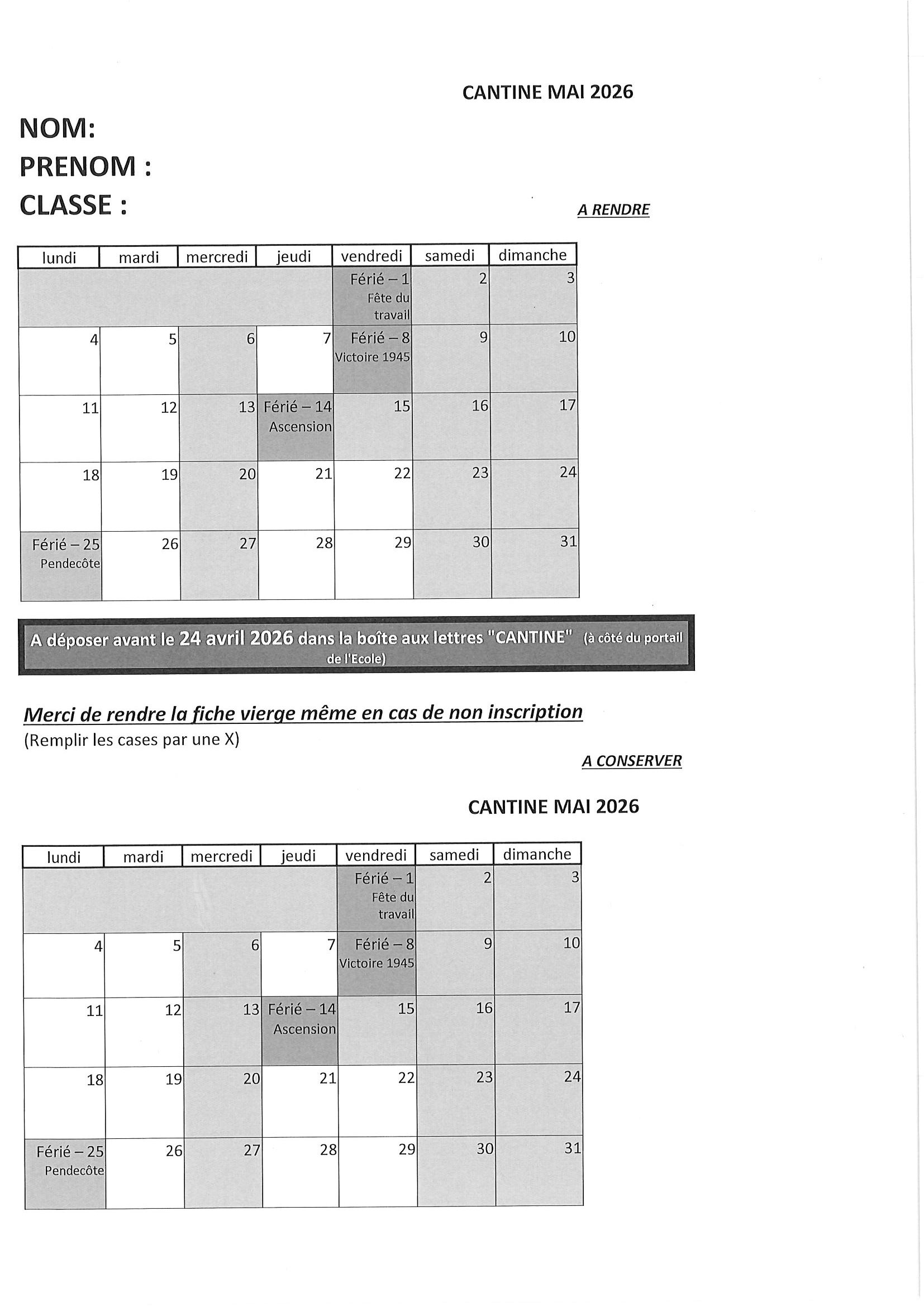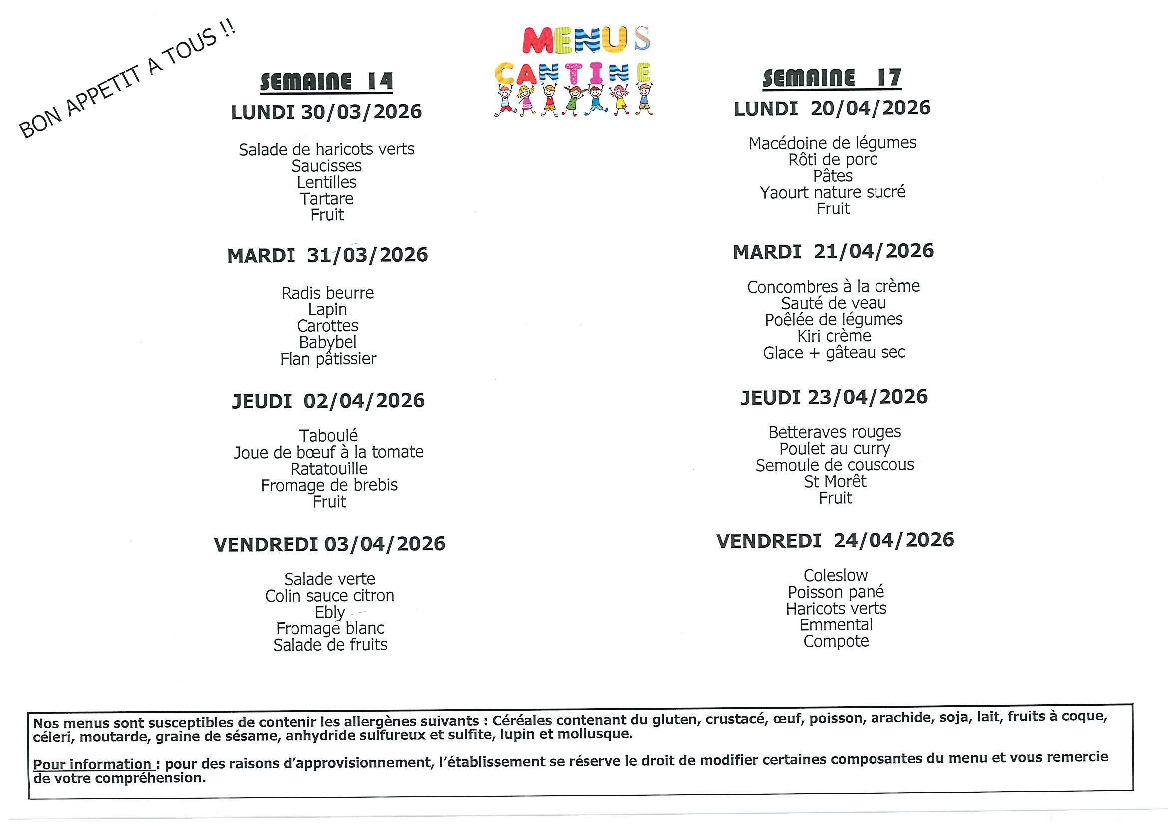 Le prix du repas pour l’année scolaire 2025-2026 est de 3€